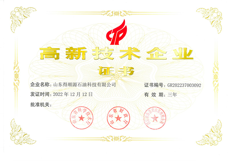 山東得順源石油科技有限公司成立于2006年,注冊資金壹億伍仟柒佰萬元整,位于山東東營,是以油田化學品研發、生產和應用為主的專業化高新技術企業,通過了國家級專精特新“小巨人”、山東省“一企一技術”研發中心認定。公司業務包含油田化學品研發與技術服務、油田化學品生產與銷售、鉆井液技術服務等業務領域。擁有一批自主知識產權的專項技術和特色產品。